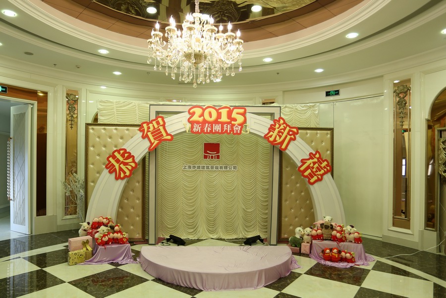 2015年2月6日下午18點(diǎn)30分,上海亦境建筑景觀有限公司2015迎春團(tuán)拜會(huì)在長(zhǎng)風(fēng)湖畔花嫁麗舍大酒店歡樂開場(chǎng),200多位嘉賓和亦境員工們濟(jì)濟(jì)一堂,共慶即將到來的羊年春節(jié)。
