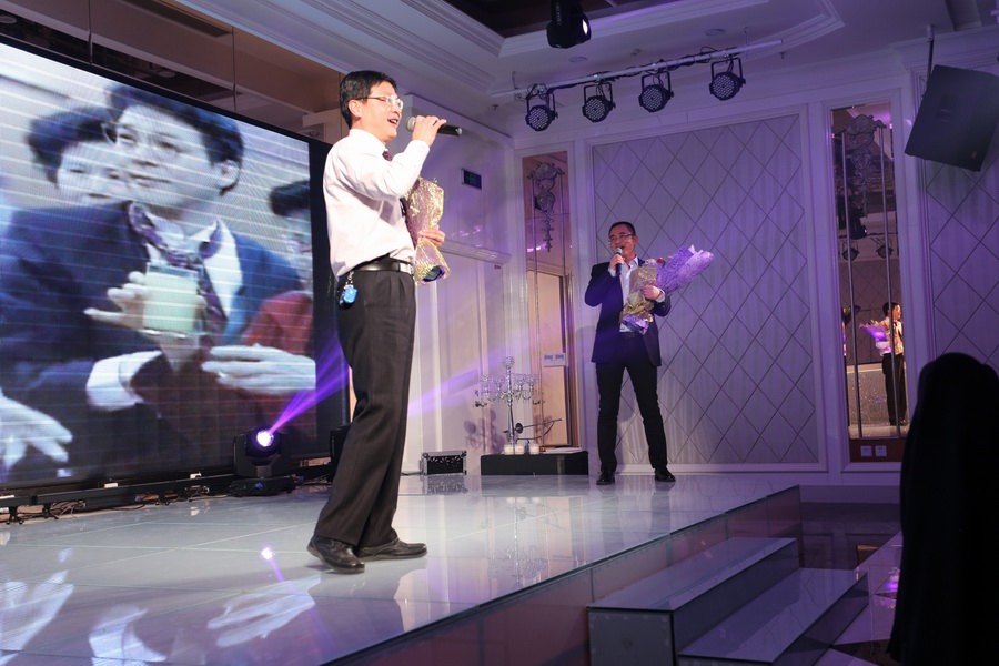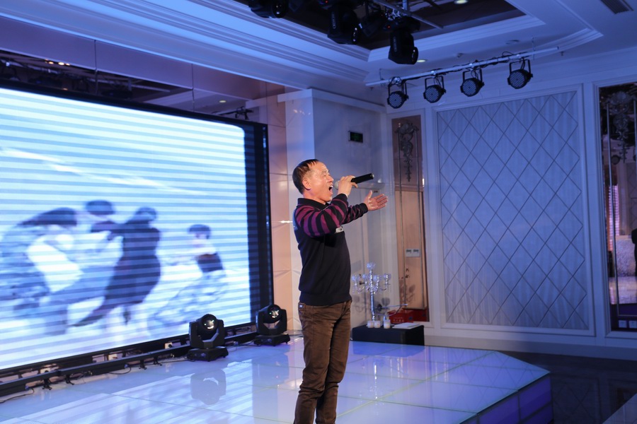 董事長(zhǎng)王云、總經(jīng)理王潔文深情演繹姜育恒經(jīng)典名曲《跟往事干杯》,引發(fā)全場(chǎng)雷鳴般的掌聲