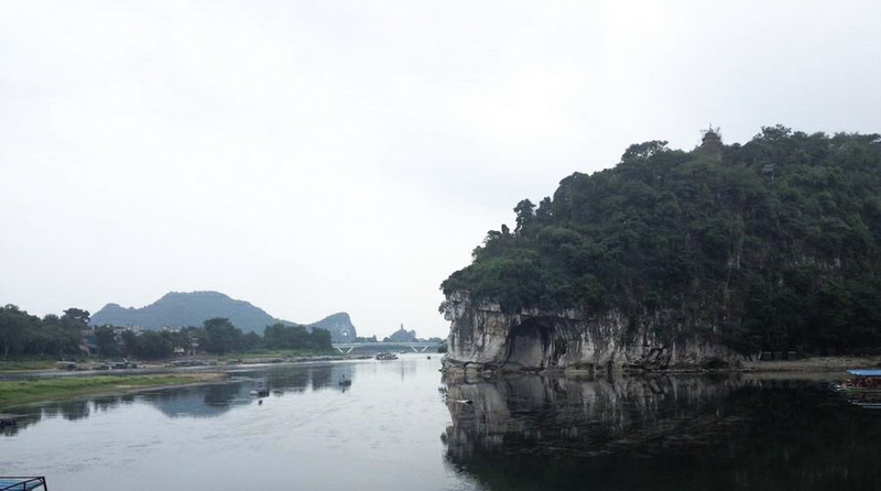 象鼻山位于廣西省桂林市內(nèi)桃花江與漓江匯流處,山形因酷似一只站在江邊伸鼻豪飲漓江水的巨象而得名,被人們稱為桂林山水的象征。象鼻山海拔200米,高出水面55米,長108米,寬100米,山體面積1.3公頃。山水前部的水月洞,彎如滿月,穿透山體,清碧的江水洞中穿鼻而過,洞影倒映江面,構(gòu)成“水底有明月,水上明月浮”的奇觀,“象山水月”因之成為桂林山水一絕。