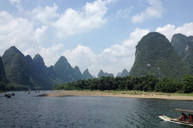 百里江流千幅畫,漓江山水甲天下。從桂林到陽朔共83 公里水程,像蜿蜒的玉帶,纏繞在蒼翠的奇峰中。乘舟泛游漓江,可觀到奇峰倒影,碧水青山,牧童悠歌,漁翁閑釣,古樸的田園人家,清新的呼吸,一切都那么詩情畫意,讓人陶醉其中,不忍離去。