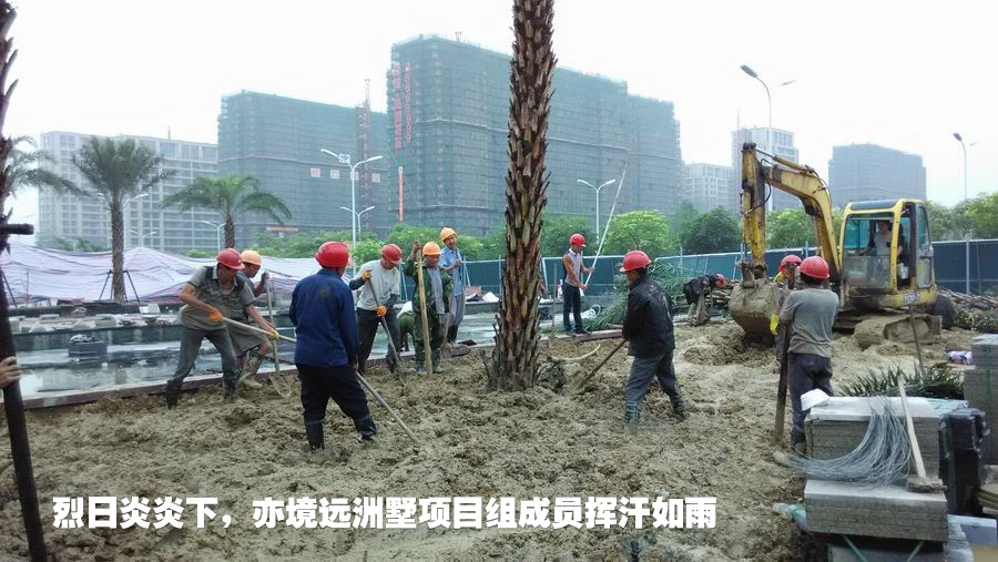 面對高溫多雨的天氣條件、多專業(yè)交叉施工的工作面、反季節(jié)種植等多種不利因素,亦境遠(yuǎn)洲墅項目組制訂了“三班倒”作業(yè)制、分區(qū)包干責(zé)任到人等制度,并通過搭建施工雨棚、采用高溫防護(hù)措施及周密詳盡的技術(shù)解決方案,確保了工程施工進(jìn)度與質(zhì)量。