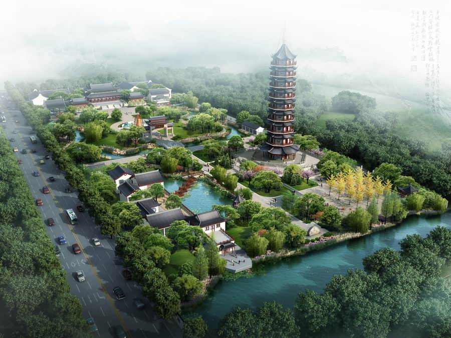 設(shè)計特色:充分考慮寺院發(fā)展與土地局限的矛盾,將社區(qū)公園與寺院相結(jié)合,延長寺院軸線感,完善功能及景觀環(huán)境,打造“前園后寺”的寺院格局。