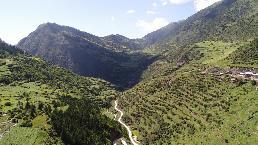 多兒鄉(xiāng)位于迭部縣境東南部,毗鄰我們的項目基地。這里兩側(cè)山峰翠立,山谷野花繁盛,錯落有致的踏板房羅列在山坡上,是當?shù)刂淖匀伙L光旅游勝地。