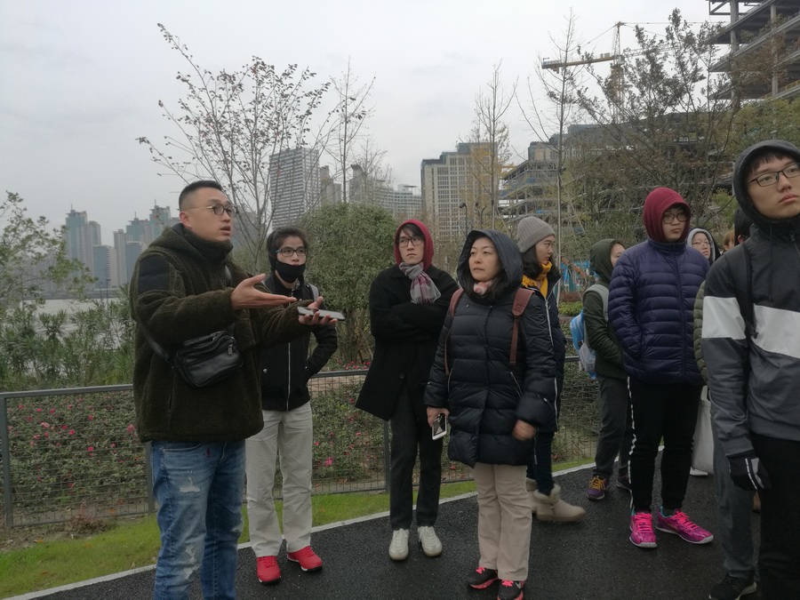 兩位設(shè)計(jì)師細(xì)細(xì)講述浦江歷史、碼頭風(fēng)貌,從防汛墻景觀工程處理、地面鋪裝材料運(yùn)用、濱水景觀植物配置、工業(yè)遺址景觀規(guī)劃等方面為學(xué)生們進(jìn)行了詳細(xì)介紹,以深入淺出的講解闡述了如何將這些碼頭遺址以新的語言、新的詮釋,衍生新時(shí)代的繁花似錦,展示新的浦江風(fēng)貌。通過對(duì)風(fēng)景園林設(shè)計(jì)的獨(dú)到見解,帶領(lǐng)同學(xué)們感受了老碼頭的脫胎換骨。