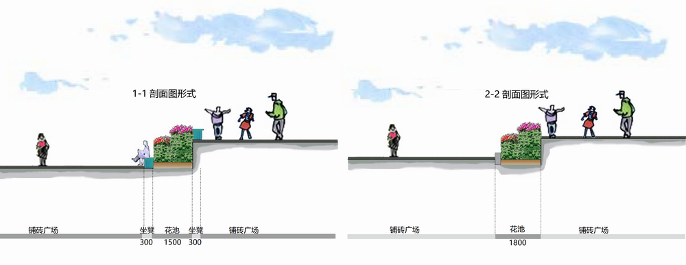 場(chǎng)地鋪裝:整體色系延續(xù)建筑立面以灰紅相間,灰白為主,紅褐為次的風(fēng)格樣式。地面跳躍的線性紅褐色鋪裝與片狀灰白鋪裝相結(jié)合的形式,使校園整體樣式如一棵樹苗在生根發(fā)芽,茁壯成長(zhǎng)。