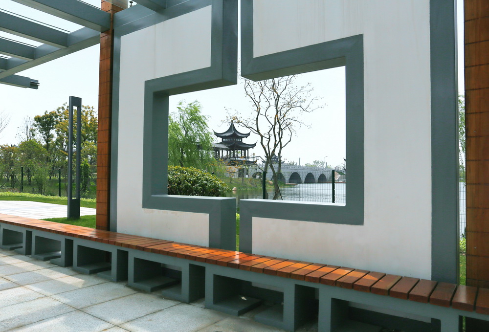 本項(xiàng)目位于江蘇省張家港市大新鎮(zhèn),總規(guī)模24hm2。新湖是大新鎮(zhèn)最大的人工湖,項(xiàng)目建設(shè)對(duì)于調(diào)節(jié)大新鎮(zhèn)水系生態(tài)有著極大的促進(jìn)作用。本項(xiàng)目聯(lián)通縱橫水網(wǎng),打造“核心凝聚”的景觀格局 ;設(shè)計(jì)上融古通今,營(yíng)造具有水鄉(xiāng)底蘊(yùn)、圈層遞進(jìn)的濱水活力公園,結(jié)合岸線構(gòu)建的彈性生態(tài)活力帶塑造10 hm2生態(tài)景觀湖,打造新湖景觀名片;秉承低碳與彈性景觀理念,營(yíng)建低成本景觀。項(xiàng)目建設(shè)完成后,以吉祥文化為主題的休閑公園,通過(guò)貫穿健康步道,增設(shè)觀景塔、風(fēng)雨廊橋、休閑廣場(chǎng)及相關(guān)配套設(shè)施,滿足周邊居民多元化的游憩需求。得到業(yè)主及周邊居民的廣泛贊賞,對(duì)于完善大新鎮(zhèn)游憩體系,有著極大的促進(jìn)作用。
