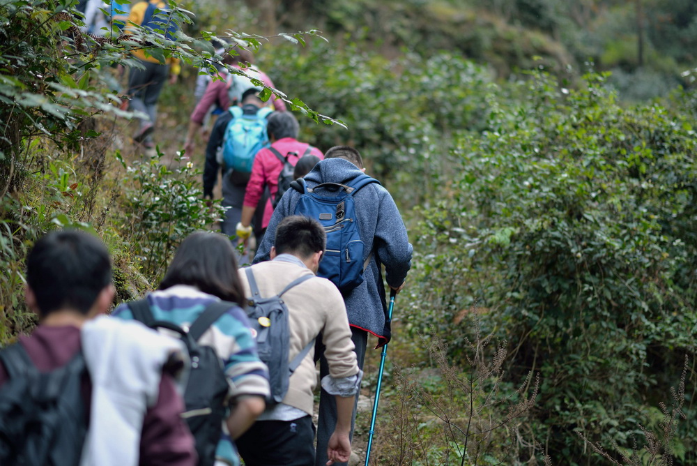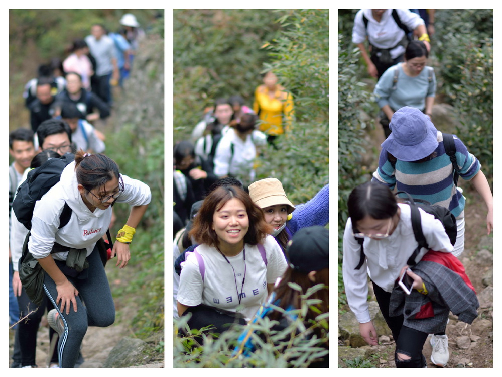 雖然很多同事都是第一次徒步爬山,累的氣喘吁吁,但大家都互幫互助;累了的就一起歇會,能爬的繼續(xù)爬。途中的樹木灌叢、一溪一流都給這條路線注入了生命,隊友默默相伴,漫漫山路不至于孤單。