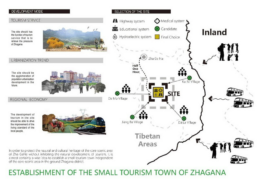 既要保護(hù)扎尕那核心景區(qū)的自然與文化遺存,又不抑制旅游的自然發(fā)展,在大扎尕那區(qū)域內(nèi)設(shè)置獨(dú)立于扎尕那核心景區(qū)的旅游門戶小鎮(zhèn)的構(gòu)想呼之欲出。
