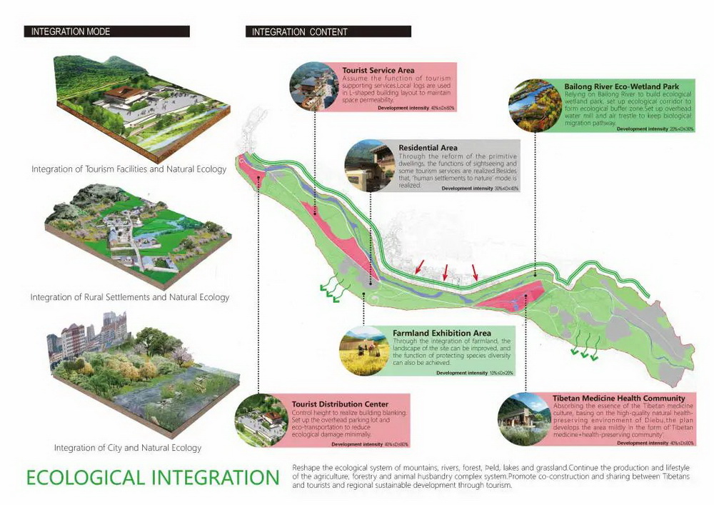 本小鎮(zhèn)引用扎尕那的生態(tài)瑰寶——“壺天模式”與農(nóng)林牧復(fù)合系統(tǒng)的天人合一的生產(chǎn)生活方式進(jìn)行了傳承和重塑;對扎尕那的文化寶藏——藏地文化、藏傳佛教文化、農(nóng)業(yè)文化、建筑文化進(jìn)行傳承與發(fā)展;以旅游業(yè)態(tài)為載體進(jìn)行文化傳承,為藏民參與提供了平臺(tái),切實(shí)引導(dǎo)與促進(jìn)扎尕那大生態(tài)區(qū)的可持續(xù)發(fā)展,綻放人間香巴拉,實(shí)現(xiàn)公眾的共享與共建。
