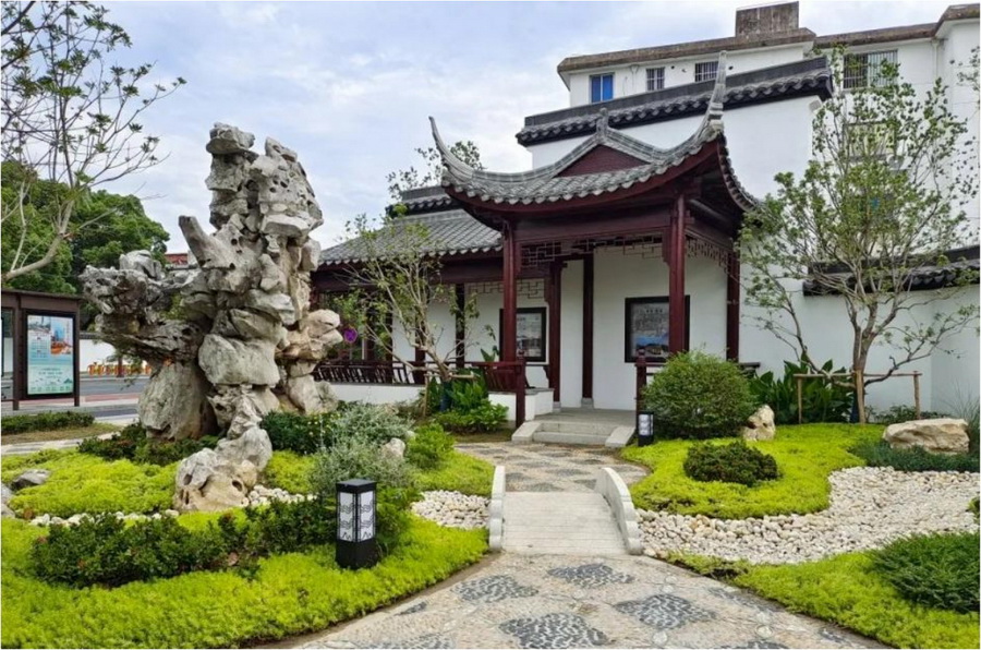 履泰園位于吳江區(qū)中山南路履泰橋附近,周邊分布著萊福公寓居民片區(qū)、松陵小學(xué)等,設(shè)計(jì)范圍面積約為880㎡。在周邊居住密集的城市區(qū)域,這一尚可改造為公園的狹小地塊彌足珍貴。設(shè)計(jì)取自古橋履泰橋中的“履泰”二字,通過連續(xù)的中式白墻來遮蔽場地內(nèi)的市政設(shè)備,結(jié)合半廊方亭和原有的假山湖石,以中式風(fēng)格的造景手法,打造履泰橋周邊社區(qū)開放活力的游憩空間。結(jié)合吳模路綠化界面改造,以蘇州“口袋公園”建設(shè)為契機(jī),改善老城區(qū)密集社區(qū)戶外游憩空間為主要目標(biāo),保留現(xiàn)場喬木和湖石資源,梳理取松陵古橋履泰橋的歷史底蘊(yùn),以“頤豐履泰”的美好寓意和愿景,融入蘇州園林的精致造園手法,構(gòu)筑繁華都市中一處兼具活動與休息空間的市民共享的水墨花園空間。