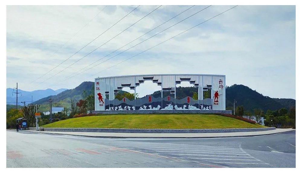 設(shè)計位于涇縣云嶺鎮(zhèn)縣道X062與省道S322交匯處的道路節(jié)點,設(shè)計以新四軍紅色革命結(jié)合皖南村落印象,以現(xiàn)代材料通過透景涇縣山水打造了具有紅色文化、涇縣人文、皖南山水相結(jié)合的“云嶺印象”,是展現(xiàn)涇縣紅色文化的窗口。