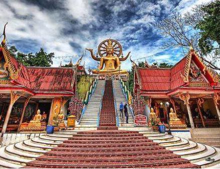 大佛海灘(Big Buddha Beach)因海灘上有一尊大佛而得名,12米高的金色大佛(Big Buddha)在北部海邊的菩亞寺(Wat Phra Yai)內(nèi),佛像面朝綠色的小山,背對無邊的大海,佛像是沉思狀,高達(dá)十二米,氣宇非凡,靈氣萬千,每到傍晚太陽西下的時(shí)候,余暉照映在佛像的身軀上,金碧輝煌,是欣賞落日的絕佳地。