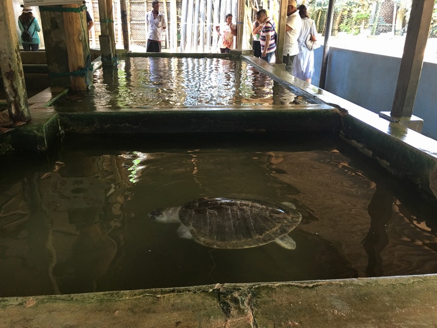斯里蘭卡是觀賞海龜?shù)睦硐雵?guó)度,海龜還是一直位列瀕危動(dòng)物名單之上。所以斯里蘭卡政府和一些民間組織在沿海地區(qū)開設(shè)了很多海龜保護(hù)中心,通過(guò)人為介入保護(hù)的措施,使得這一瀕危物種繁衍生息。他們專門收養(yǎng)海龜孤兒、殘疾海龜;巡視海灘,從海灘上收集海龜?shù)?,或者從漁民手中用一定價(jià)格回收海龜?shù)?,然后放到保護(hù)中心孵化區(qū)進(jìn)行孵化,之后將新生小海龜放在池中三天養(yǎng)護(hù),最后在夜晚放歸大海。