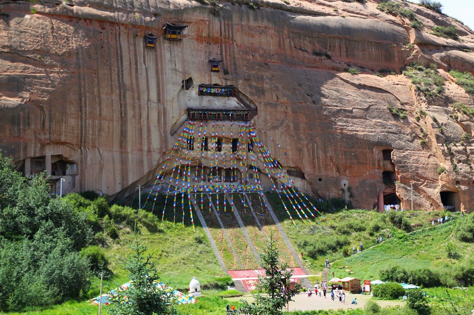 它沒(méi)有森嚴(yán)寶殿,沒(méi)有瓊樓玉宇,沒(méi)有古木參天,它有的,只是一面巨大的陡直平整的紅色光禿崖壁,山壁里開(kāi)鑿了上下七層有如迷宮般的洞窟,共二十一窟,下大上小,呈寶塔形,這種結(jié)構(gòu)的石窟造形獨(dú)特,難得一見(jiàn)。洞窟層層疊疊,每層之間都有隧道相通,由第一層北邊入內(nèi),隧道呈之字形,回廊曲折。