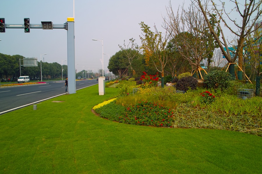金港大道位于張家港市,北起南二環(huán)路,南至西塘公路,全長3600米;道路斷面為四板五帶式,其中:中分帶寬5米,兩側(cè)主、輔道間綠化帶寬各20米,總綠化面積為21萬平方米。
