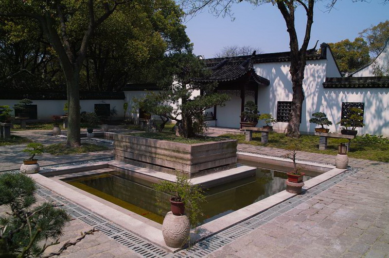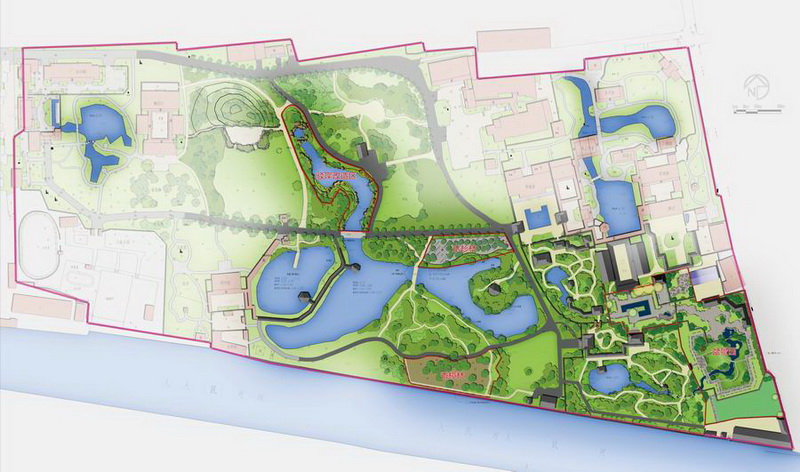 ■將“以水為脈,活水繞園”作為水系改造布局理念,并融合明末清初文人園簡潔樸實的理水手法,通過盆景園中“半畝方塘”營造“天光云影共徘徊”的景致,再現(xiàn)了“求理”、“適意”的古韻。園內(nèi)形成池、泉、溪、渠相聯(lián)通的內(nèi)循環(huán),增加古園靜態(tài)空間的流動性;同時聯(lián)通園池與城市河道形成外循環(huán),為醉白池提供了“源頭活水”,讓園內(nèi)景觀水體共同參與到城市水體的循環(huán)代謝中。