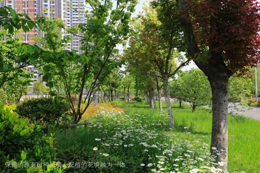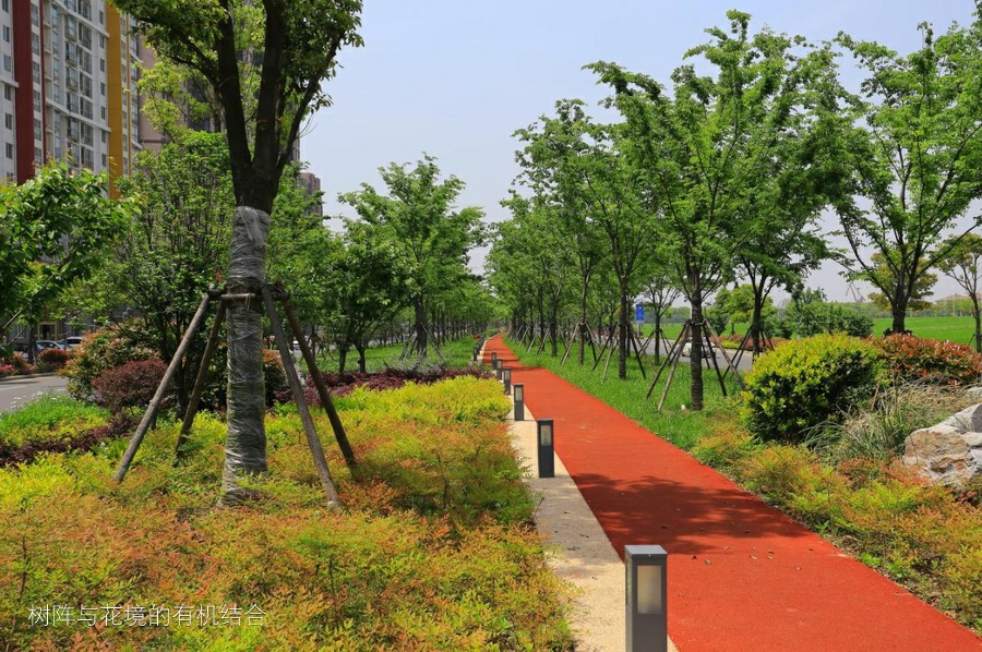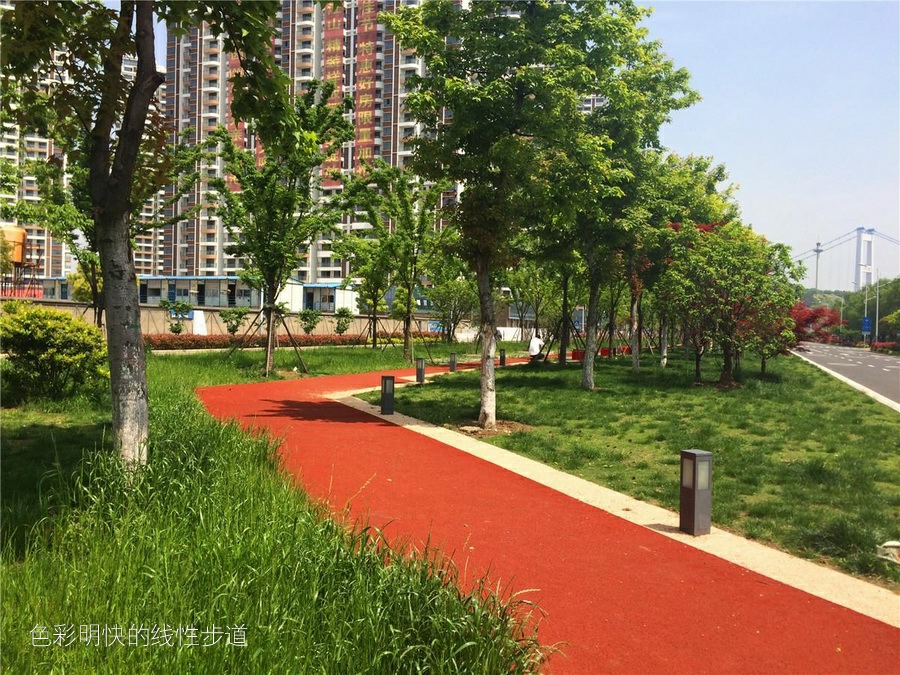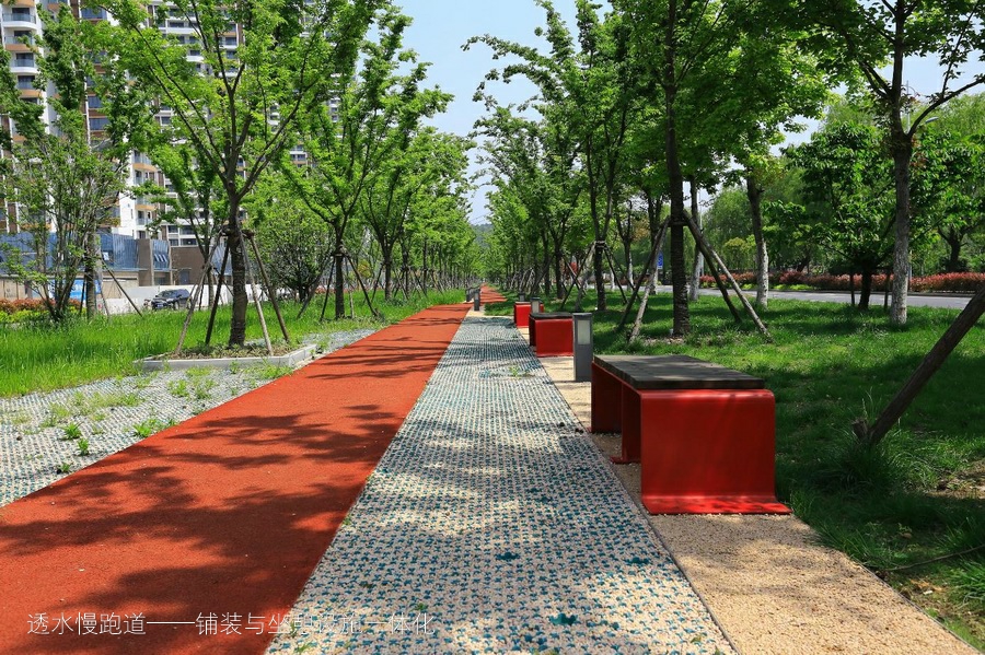 4)綠化帶中的人行步道是具備透水功能的跑道,設(shè)計過程中保留原有樹種。