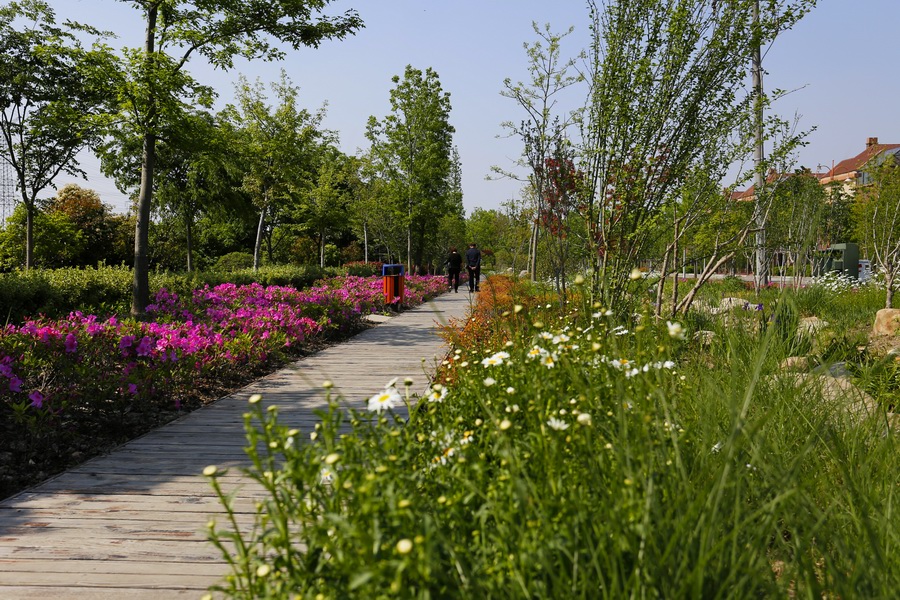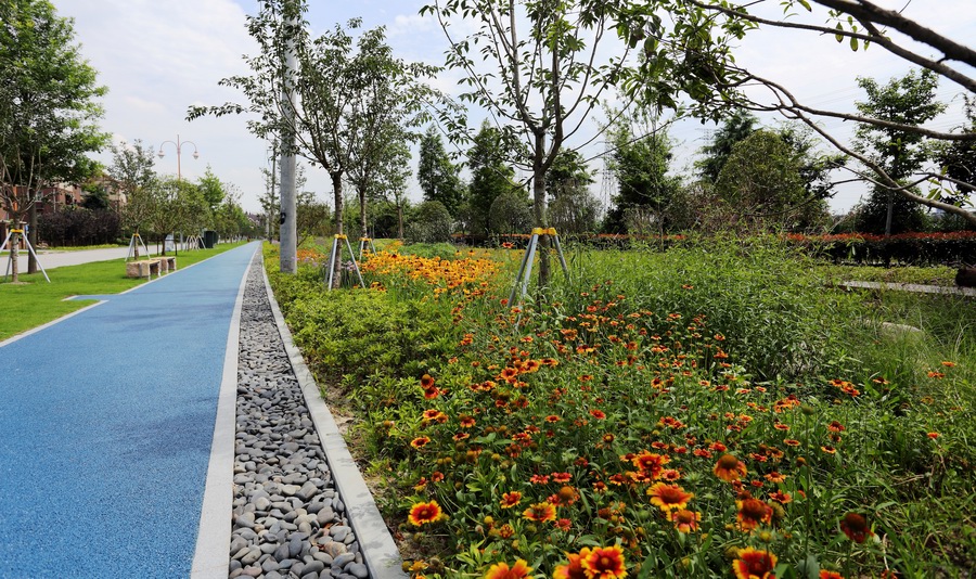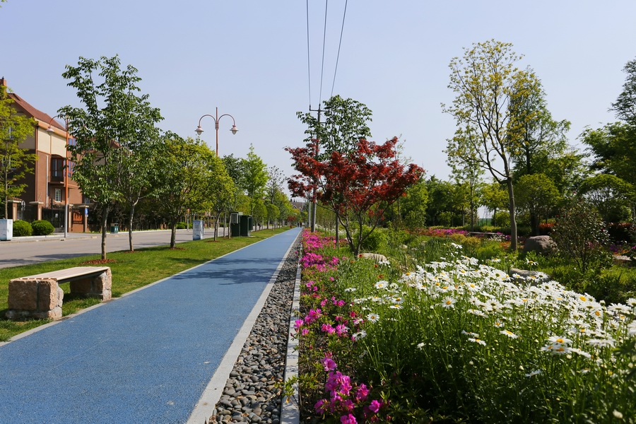 改造之后,無趣的堤壩小路消失了;取而代之的是結(jié)合地勢,翩翩曼舞在綠地中的健身康體漫步道。步道兩側(cè)開滿常年不斷的鮮花,春季的大濱菊、夏季的紫薇、秋季的金光菊、冬季的臘梅,四季紛呈,步移景異。讓健身和休閑漫步成為一種洋溢著幸福感的體驗(yàn),仿佛人生也因此而美麗綻放!