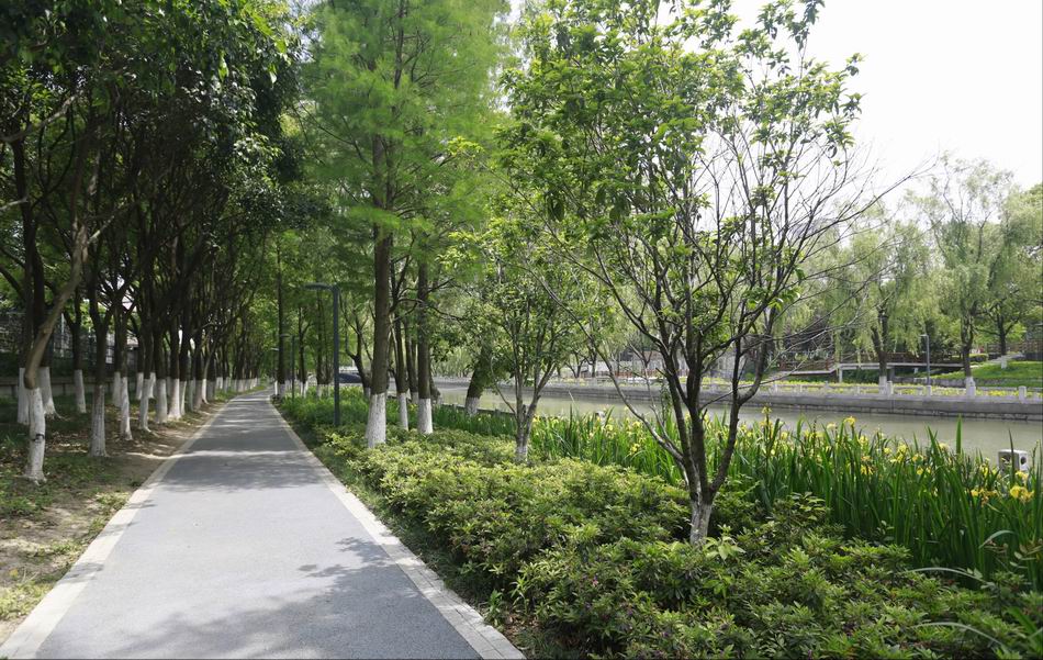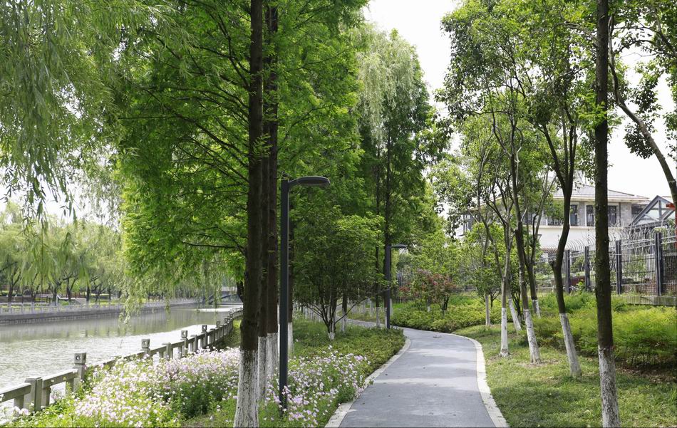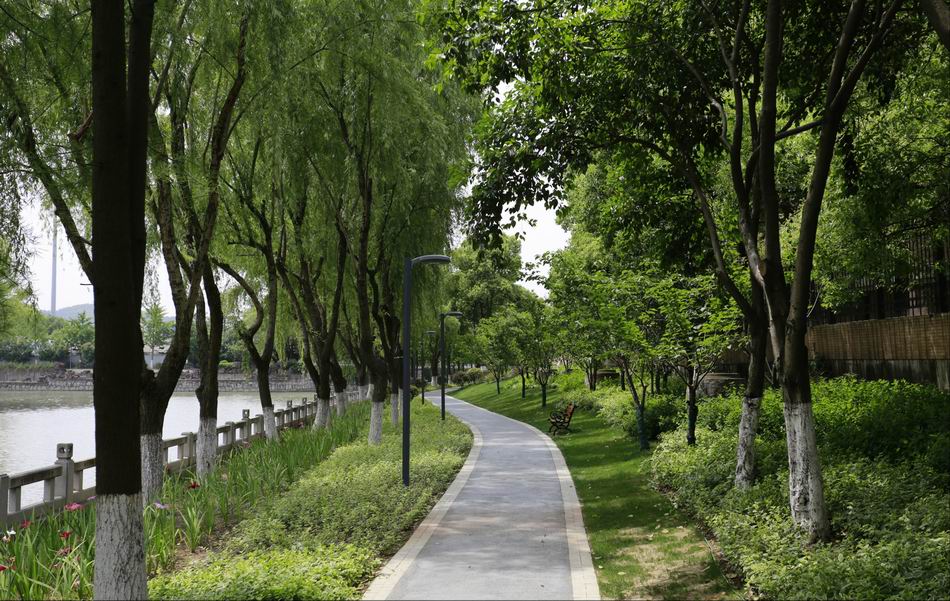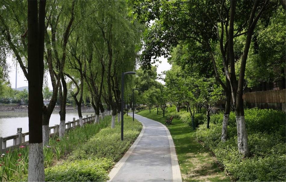 沿路添植落葉喬木和特色花灌木,結(jié)合芳香植物種植打造林蔭健康道;沿路布局指示標(biāo)識(shí)、休憩坐凳、照明、環(huán)衛(wèi)等配套服務(wù)設(shè)施。