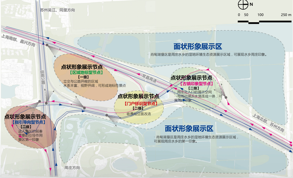 并結(jié)合現(xiàn)狀資源與地塊使用需求,從點(diǎn)-線-面多層面進(jìn)行功能分區(qū),項(xiàng)目整體打造江南水鄉(xiāng)濕地風(fēng)光展示和古鎮(zhèn)水鄉(xiāng)印象塑造等功能兼具蘆田濕地、江南煙波、古鎮(zhèn)、古鎮(zhèn)水墨印象的“門(mén)戶型”水鄉(xiāng)印象節(jié)點(diǎn)。