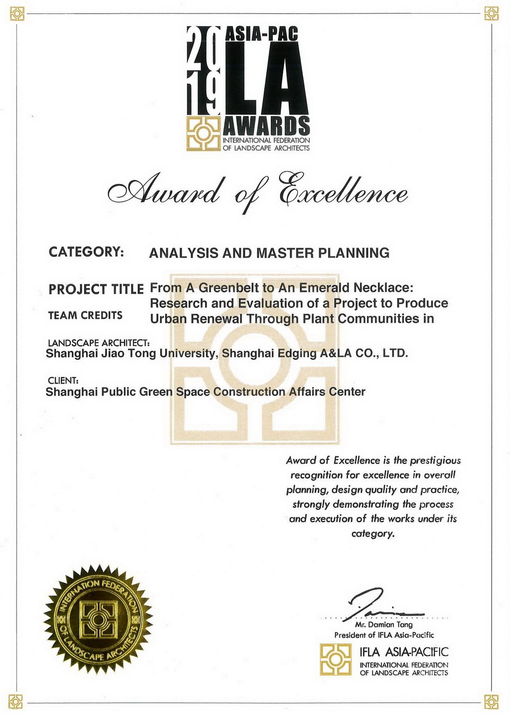 亦境公司聯(lián)合上海交通大學設計學院等單位,在2019年斬獲國際風景園林師聯(lián)合會亞太地區(qū)( IFLA APR)風景園林專業(yè)獎卓越獎4項。