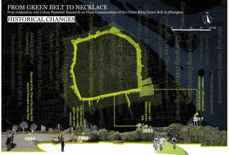 1998-2000年期間,亦境團隊的核心成員參加了多段外環(huán)林帶的設計工作,在長達20多年的時間里,上海環(huán)城綠帶發(fā)揮了巨大的生態(tài)、景觀和社會效益。2017年,亦境團隊聯(lián)合上海交通大學設計學院等單位對90KM長的外環(huán)林帶植物群落展開了全面的調查與后評估研究。旨在為外環(huán)林帶的可持續(xù)發(fā)展與游憩化轉型提供了科學依據(jù)。