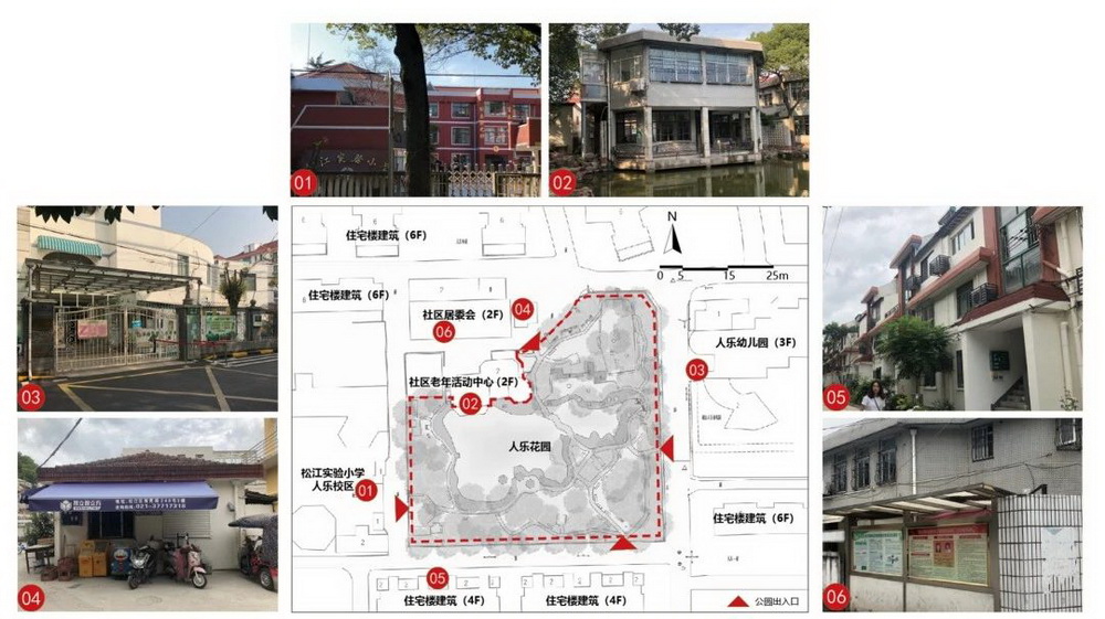 人樂(lè)花園自1980年代中期建園以來(lái),一直是社區(qū)居民樂(lè)于前往的“公共客廳”,人樂(lè)社區(qū)居民對(duì)小游園的感情很深,回憶很多。但游園內(nèi)活動(dòng)場(chǎng)地碎片化、設(shè)施老舊缺失,喬木過(guò)密導(dǎo)致林下空間光照不足、植被長(zhǎng)勢(shì)不佳,且人為踐踏嚴(yán)重......。
