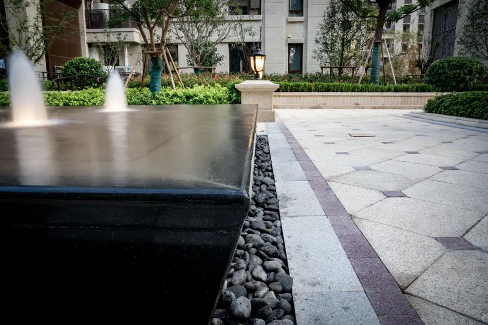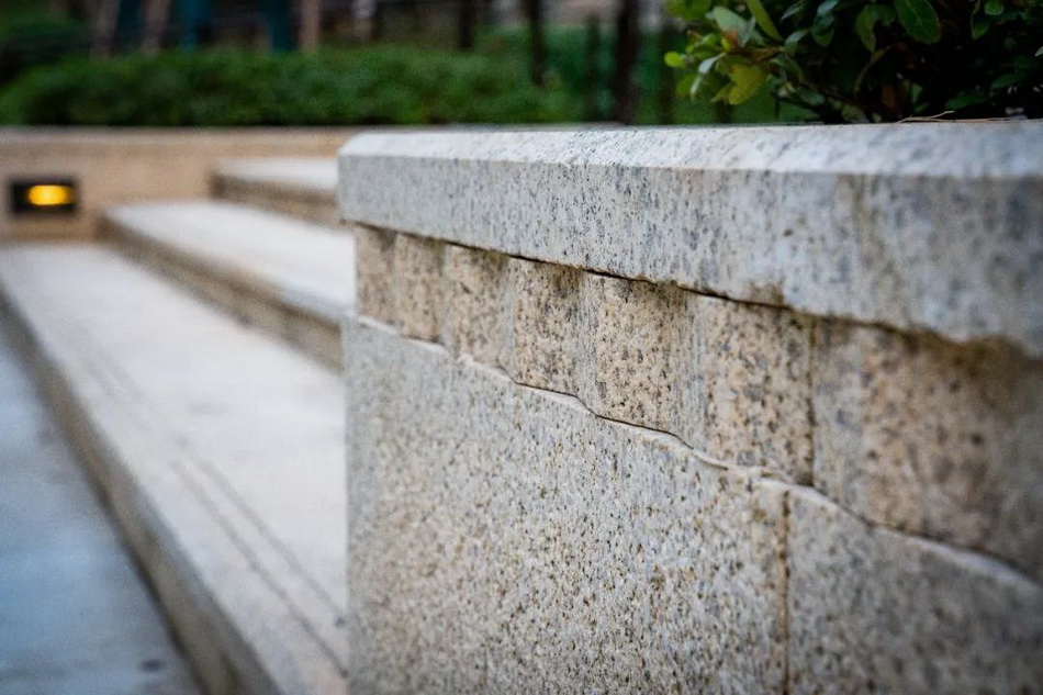 本工程有大面積的花崗巖鋪裝和水景工程,由于花崗巖孔隙度及自身特性原因,局部易出現(xiàn)返堿現(xiàn)象,影響工程質(zhì)量和美觀。對此我司在施工中,對花崗巖原材料及時全面的進行防水處理,在鋪裝過程中采用低堿性水泥、減水劑拌制砂漿或采取低堿性水泥與粘結(jié)劑拌制粘結(jié)材料等措施,減少基層砂漿對石材的水分入侵,降低返堿發(fā)生的幾率,使花崗巖鋪裝的效果達到最佳。?