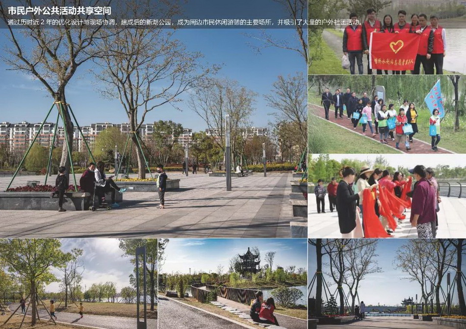 歷經(jīng)2年的建設(shè),新湖公園已經(jīng)成為大新鎮(zhèn)的公共活動中心,周邊社區(qū)居民休閑游憩的主要場所,大大激發(fā)了大新鎮(zhèn)的活力,成為各類社團與組織的理想的活動場所。