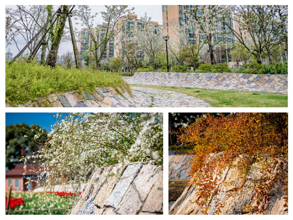 ③保留近90%的喬木,遷移長(zhǎng)勢(shì)不好的香樟20株、雪松12株、廣玉蘭15株;依據(jù)光照、地形等自然條件替換近60%的地被植物。