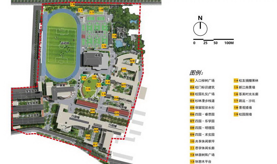 昆山柏廬高級中學(xué)周邊以居住區(qū)為主,校舍歷史悠久具有豐富的文化內(nèi)涵,場地具備完整的建筑空間格局和分區(qū),以及現(xiàn)狀良好的綠化基礎(chǔ)。亦境團隊聯(lián)合上海交通大學(xué)設(shè)計學(xué)院風(fēng)景園林研究所開展了昆山市柏廬高級中學(xué)景觀提升工程設(shè)計,包括:校門入口廣場、教學(xué)樓間花園、校園中心草坪空間等部分,項目總面積74420㎡;本次設(shè)計總面積約12821㎡。