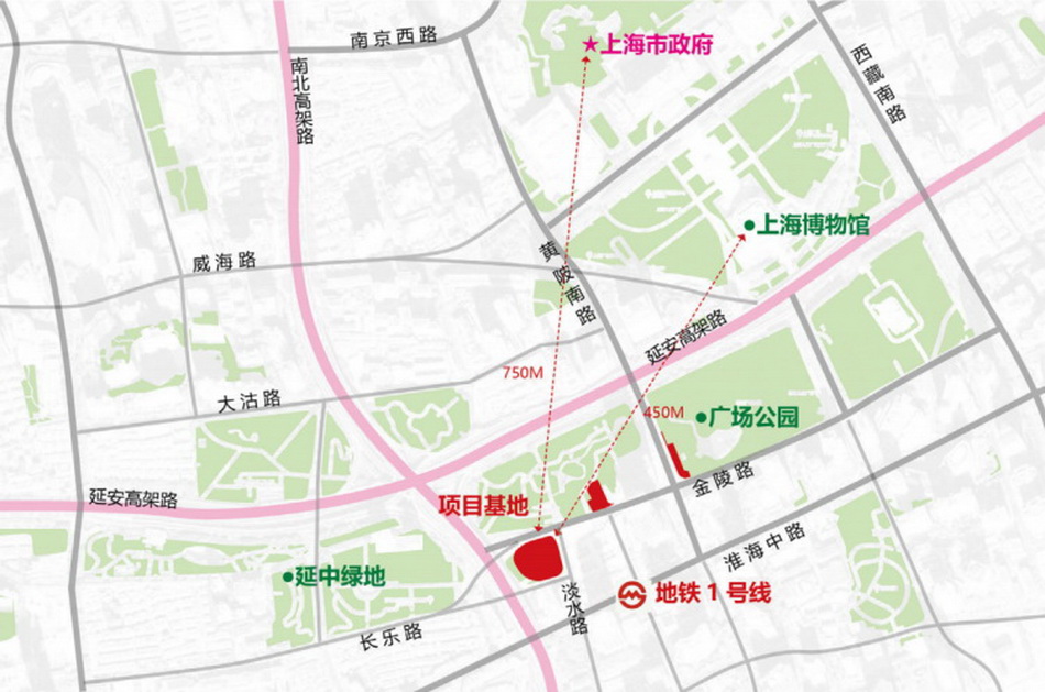 黃陂南路站在延中綠地的區(qū)位圖↑