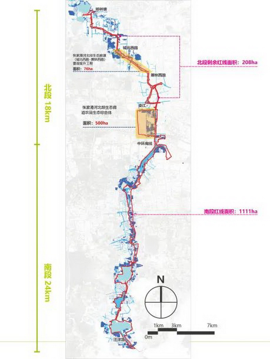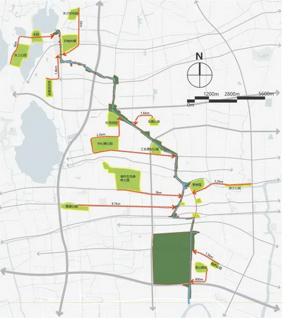 ↑ 張家港河生態(tài)走廊(北段)設計總平面圖