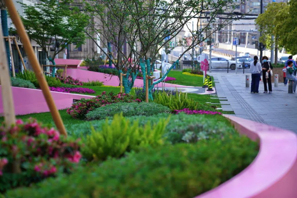 ▲云之丘花園的“粉”裝快閃(圖片源自:外灘街道辦事處)