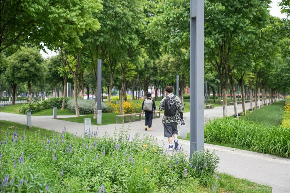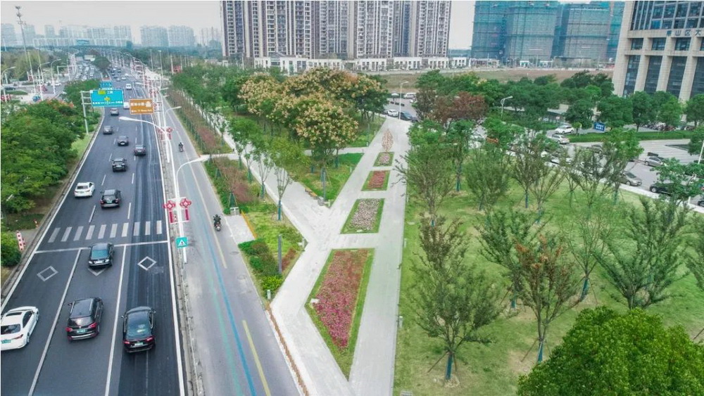 拓寬人行道,通過增加“近自然”林蔭花境帶,與非機(jī)動(dòng)車道進(jìn)行軟隔離,提升道路的林蔭率和步行舒適性,打造“會(huì)呼吸的”線性花園帶。