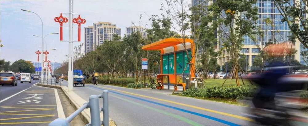 基于“綠化”、“彩化”、“人文化”的策略,將錫澄聯(lián)動(dòng)主軸的“橙色”作為標(biāo)志色,打造全齡化,時(shí)尚化的公交站臺(tái)與休憩設(shè)施。