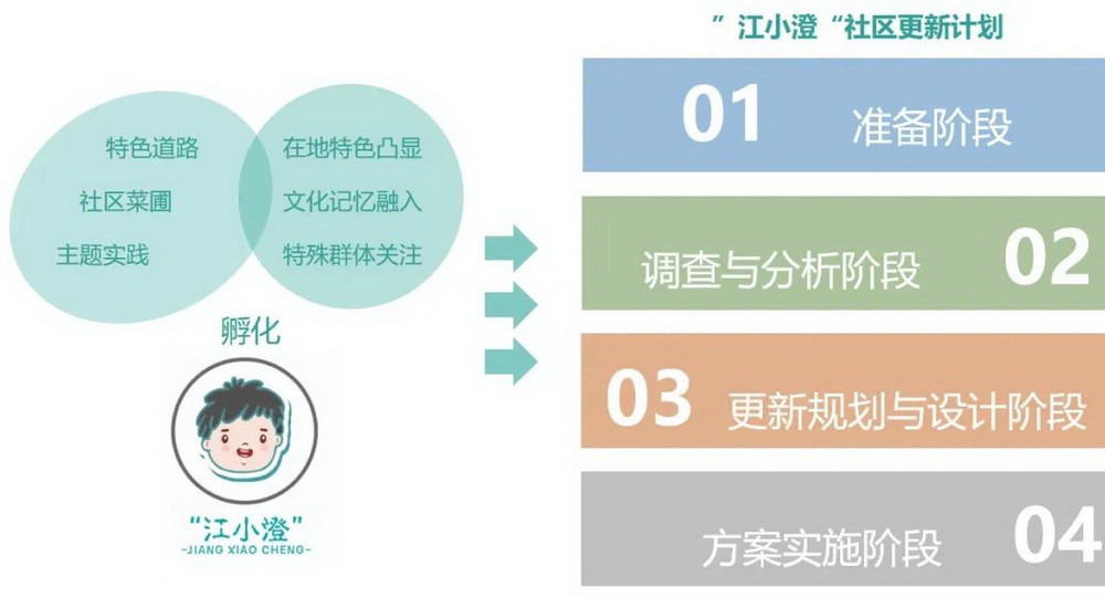 本規(guī)劃選取高密度城市老舊社區(qū)的典型“城中社區(qū)”作為最小實踐單元,針對其土地資源匱乏、公共空間供需極度不平衡等問題,創(chuàng)新孵化出“江小澄”工作模式?;诼芬娛占驹刚呷粘;顒勇窂杰壽E,邀請社區(qū)政府、居委會、物業(yè)及居民志愿者等多方代表共商更新策略,通過舉辦圓桌會議、線下卡片留言、線上路見APP收集多方意見,對更新設計方案進行多輪次論證,邀請社區(qū)能人和居民代表共同參與營建與后期維護。