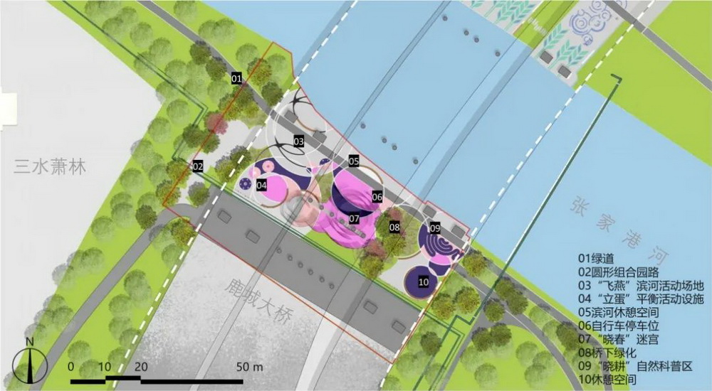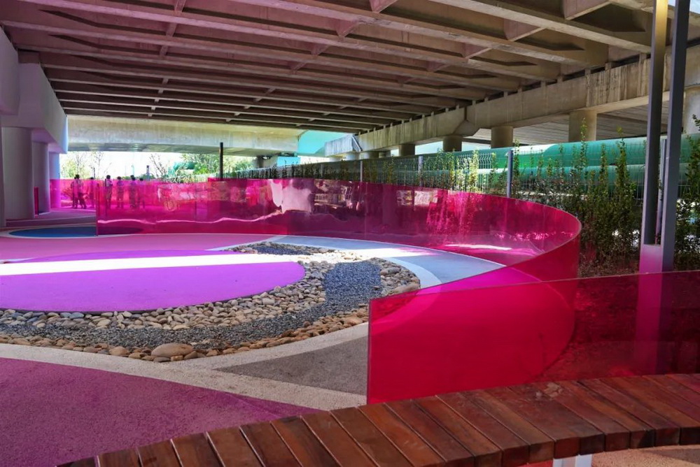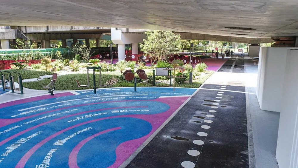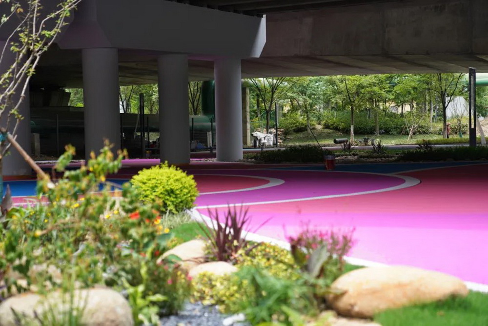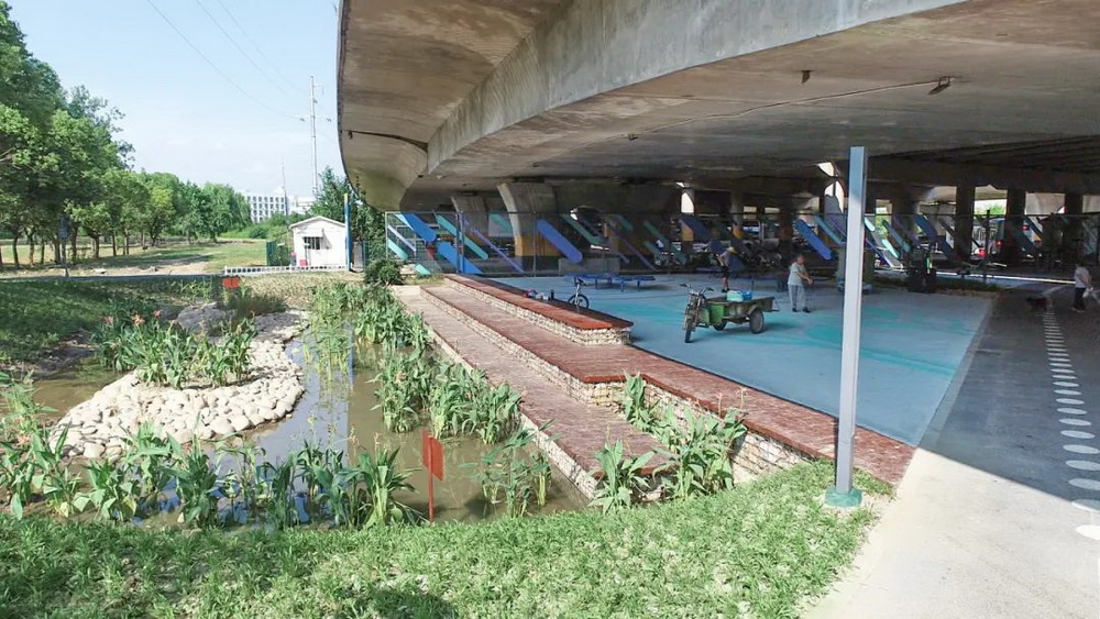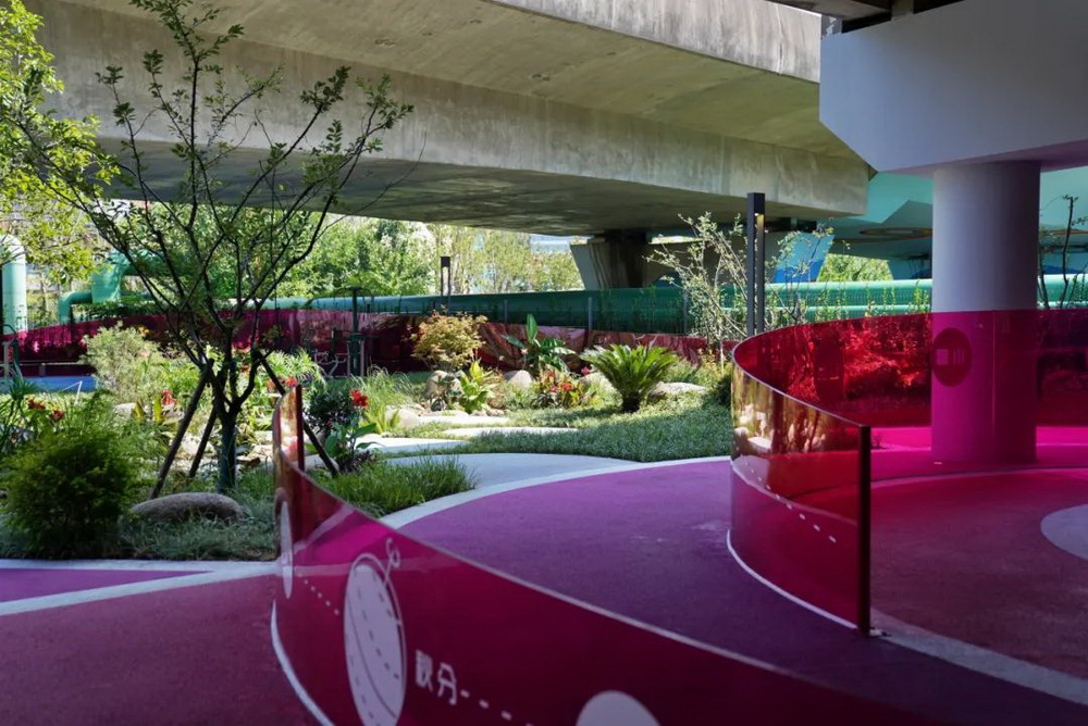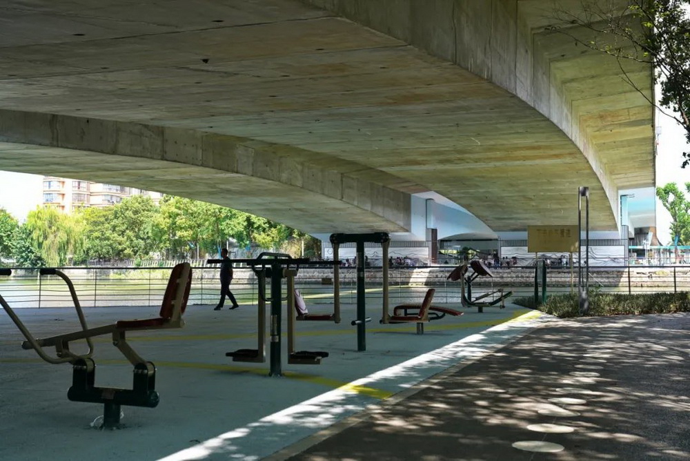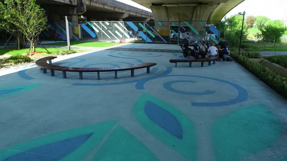 通過(guò)對(duì)橋下剩余空間的重新利用與盤活,將原本“灰暗”的閑置空間打造成為具有“自然趣”和“藝術(shù)范”的活力共享空間,集運(yùn)動(dòng)、休憩、自然與文化感知于一體的多功能空間。