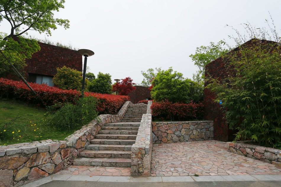 ■就地取材——利用現(xiàn)場(chǎng)保留的石材壘砌擋墻,形成臺(tái)地景觀,功能與景觀有機(jī)融合