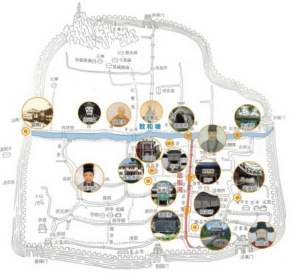 昆山市老城區(qū)致和塘與后街河組成的“T”字水軸兩岸,該區(qū)域自宋代起,即為昆山舊址新陽(yáng)縣城的核心商業(yè)貿(mào)易區(qū),周邊尚存街巷里弄、文人舊宅及私家園林等歷史文化資源,歷史底蘊(yùn)深厚。