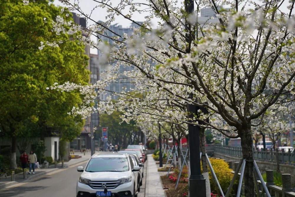 早春柳,醉櫻花,春意漾開城市車水馬龍的喧嚷