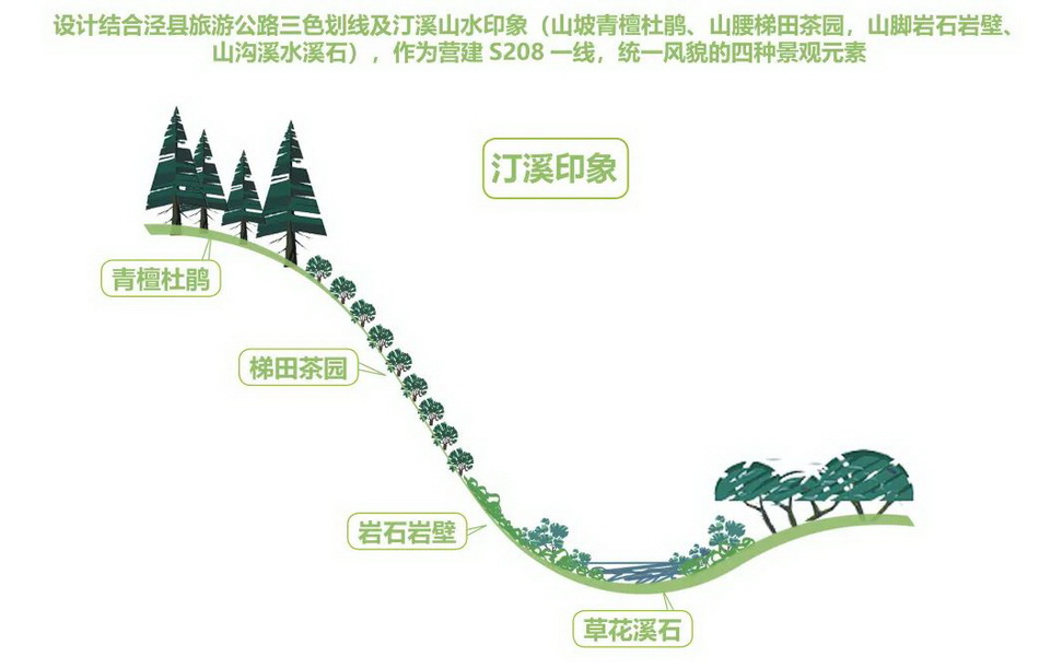 設(shè)計以“云端水墨”為主題,整合皖南川藏線的景觀資源,構(gòu)建“一線、三型、五景、十點”的景觀格局,致力打造“汀溪旅游風景攝影主干道”和“風景攝影式美麗公路”。