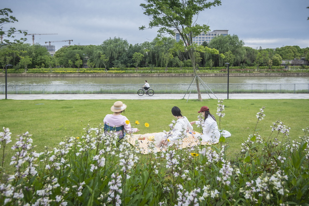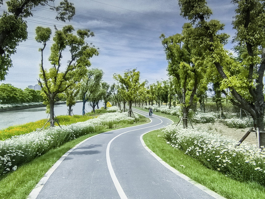 利用4種連接方式、5種綠道模式貫通了兩岸40處斷點(diǎn)區(qū)域,構(gòu)建了多層次、立體化的濱河綠道系統(tǒng),“自行車道與漫步道”依水就勢而建,時(shí)而并行,時(shí)而分離,穿行于水上、林間、田陌與花叢中,看兩岸美景,聽河中隆隆的船運(yùn)聲,打造“全景”漫游廊道。