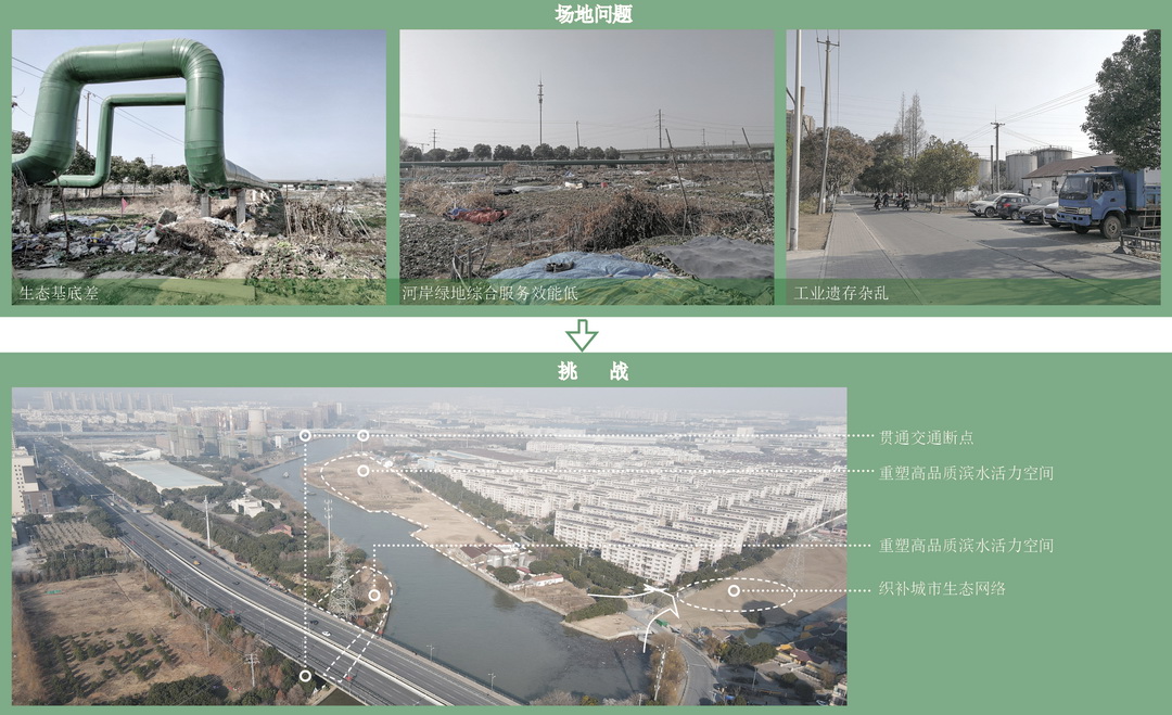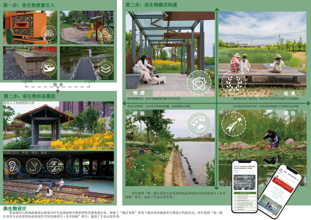 在中國“大力開展生態(tài)修復(fù),讓城市再現(xiàn)綠水青山”的高質(zhì)量轉(zhuǎn)型發(fā)展的戰(zhàn)略背景下,為解決昆山市張家港河生態(tài)廊道存在的“生態(tài)基底差,工業(yè)遺存雜亂、河岸綠地綜合服務(wù)效能低”等問題。本項(xiàng)目在國土空間規(guī)劃、韌性景觀修復(fù)、親生物設(shè)計(jì)等語境下,通過多維度全流域的前期研究、體系規(guī)劃引領(lǐng),先行區(qū)段的示范設(shè)計(jì),修復(fù)廊道生態(tài)基底,織補(bǔ)城市生態(tài)網(wǎng)絡(luò),重塑高品質(zhì)濱水活力空間,打造了一條自然與文化融合的多元生態(tài)聚能廊道,為市民提供了親自然的“漫游廊道”與親生物的“自然研習(xí)”空間,實(shí)現(xiàn)了人境共生。