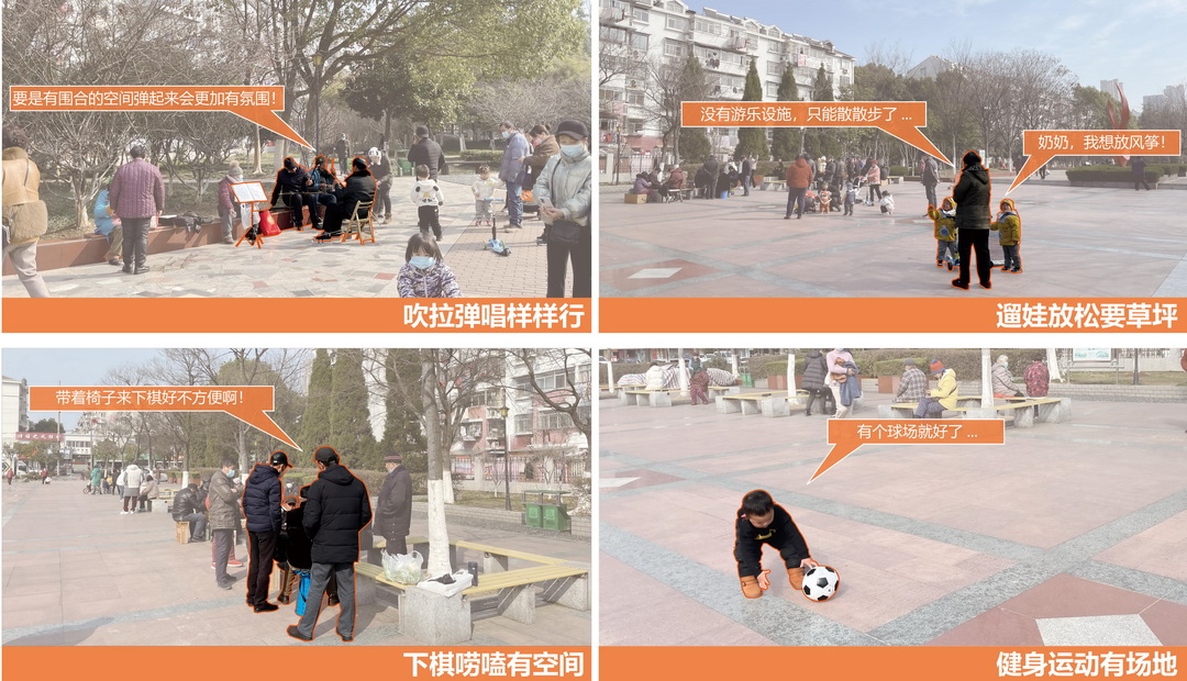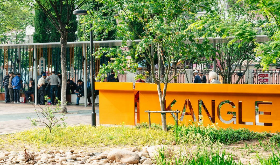 康樂游園建成后正是暖春,林下健身區(qū)設置了較開闊的林下空間與大量休憩設施,成為了老幼慢行活動的最佳場所。象棋對弈、打摜蛋總會吸引一群又一群人圍觀;春風亭、康樂亭里時不時傳來悠揚的胡琴笛聲,老人們合奏《送別》《送戰(zhàn)友》等經(jīng)典老歌,悠悠飄蕩。